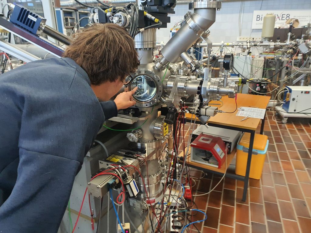 Ionski pospeševalnik IJS v Podgorici, ki sodi pod Odsek za fiziko nizkih in srednjih energij IJS (F2) je v grobem sestavljen iz izvora ionov, samega pospeševalnika le-teh in več eksperimentalnih linij. Boštjan Jenčič že 8 let na eni izmed eksperimentalnih linij dela z ionskim žarkom.